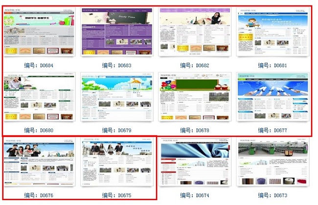 新增10套教育行业样板网站,样板编号为D0675-D0684,如图: