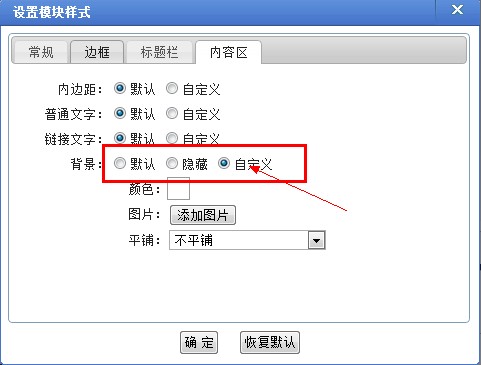 模块背景、导航背景、网站背景的背景颜色支持设置透明色,比如,想要模块背景颜色变成透明色,可以在“设置模块样式—内容区—背景—自定义”中进行设置: